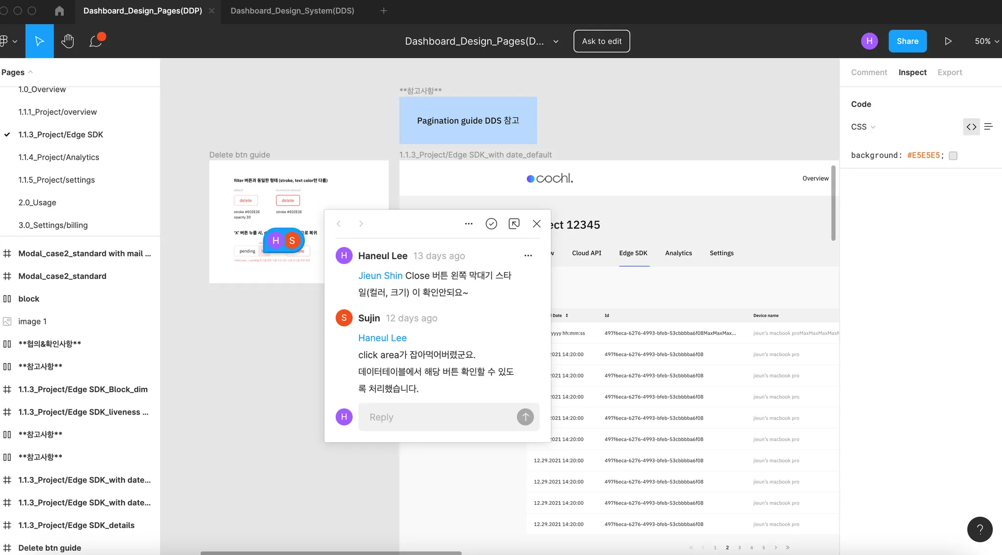 지금은 팀 내 다른 프론트엔드 개발자이신 동호님과 대시보드 리뉴얼 작업을 하고 있습니다. 거의 완성 단계에 가까운 상황으로, 현재는 UI 파트 작업을 주로 담당하고 있어요. 제가 동호님보다는 늦게 Cochl에 합류하게 되어 간단한 작업부터 시작해서 지금은 많은 부분 함께 하고 있으며, 페이지 단위로 작업량을 나눠서 손발을 맞춰나가고 있습니다. 개발을 하다 보면 개발자들은 코딩 컨벤션이나, 코드 주석 등 서로의 작업 스타일을 맞춰야 하는 데 이번에 동호님과 작업하면서 Cochl에서 해당 부분을 다질 기회를 가질 수 있었습니다. 참고하는 건 Airbnb의 코딩 컨벤션 스타일을 참고해서 작업하고 있으며, GitHub에서 서로 코드리뷰도 해주면서 전반적인 프로덕트 퀄리티를 높이려고 합니다.