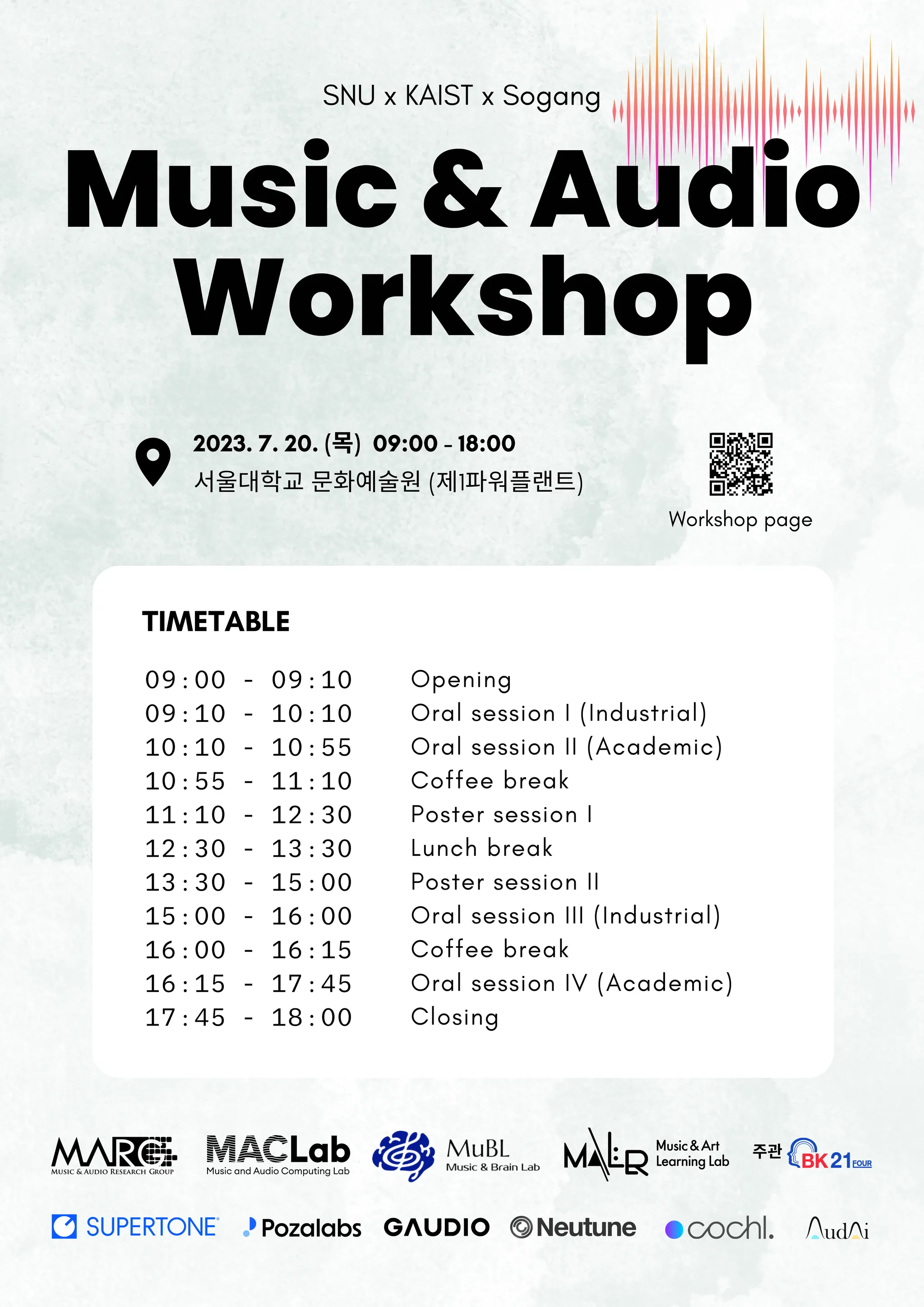 본 행사는 음악 및 오디오 연구를 주도하고 있는 연구실과 기업이 모여 연구 성과를 공유하고, 연구자들 간 교류를 증진시키는 행사입니다.