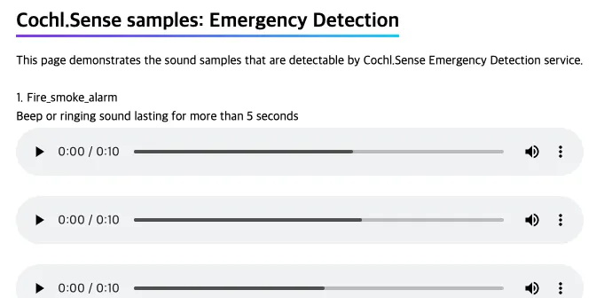 Emergency detection sound sample 페이지