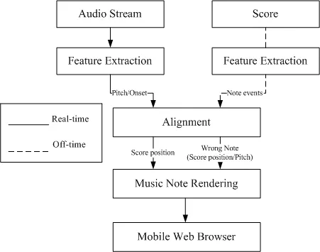 Automatic music transcription (AMT) aims to extract a musical notation in a form of symbolic data from a recording of a music signal automatically. It encompasses a wide range of tasks in the music signal processing, including note onset detection, pitch estimation, and multi-instrument separation. For a full transcription, by means of the complete conversion from an audio signal to a “piano-roll” representation, two essential data of “onset/offset” and “pitch” should be obtained from both temporal and spectral analysis. In addition, our recent studies have been extended to find new features that imply musical expressions, such as a singing voice and varied playing styles of musical instruments.